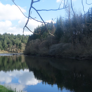 As the path curves to the right, a gap in the trees reveals expansive views in both directions of the River Slaney. Standing on the river bank surrounded by woodland, I was struck by the sense of absolute stillness and silence. Benches are strategically-placed for visitors to drink in those views, and for some mindful moments of contemplation.