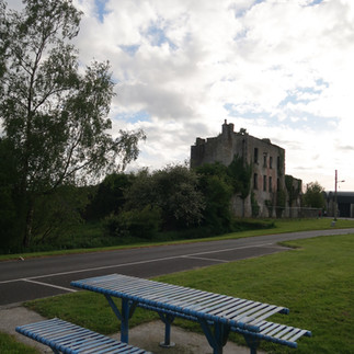 A short distance westward stands the imposing ruins of Ballycowan Castle, its six tall distinctive chimneys visible from afar. It pre-dates the construction of the canal, built c. 1589 by Thomas Morres. The structure we see today was extended by Jasper Herbert in 1626 on land granted to him during the Plantations - the tower was added at this point. The castle remained in Herbert ownership until 1666 when it passed to the Earl of Mountrath.