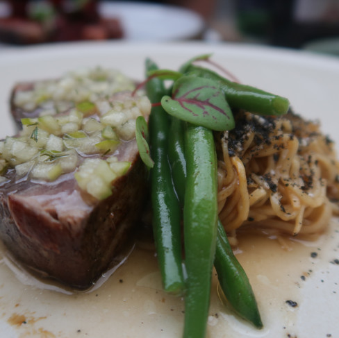 Evening one and we're off to Art'N Blum, renowned for its creative cuisine and innovative flavours. Menus are seasonal and change frequently featuring dishes like hake tartare with chorizo, goats cheese Burrata or tuna with Asian noodles. Every course is superb. Things get really interesting at dessert with a mix of sweet and savoury - mascarpone and raspberries sit on a buttery Sablé Breton. I'm momentarily thrown by the shallot petals on top but somehow it works and the flavours complement each other.